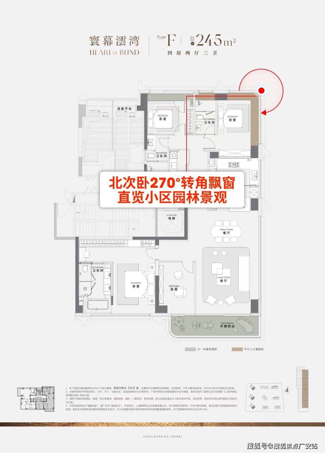 南向约15米瞰江面,东向纵瞰河与园,北向拥揽世博与园景,堪称上海滨江环幕全景平层范本!