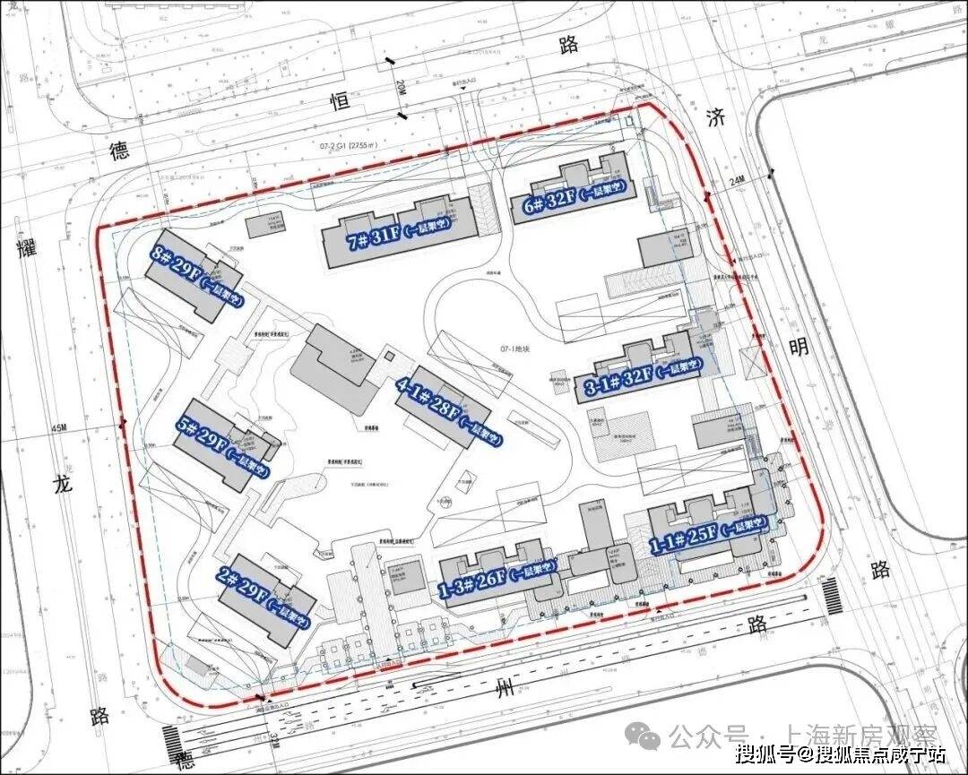 凭据项目筹划打算计划,项目拟修9栋25-32层高层室庐。统统楼栋均采用一层排挤打算。项目采用所有式人车分流打算,人行主进出口位于德州途,三个车行进出口区分位于位济明途、德州途和德恒途。