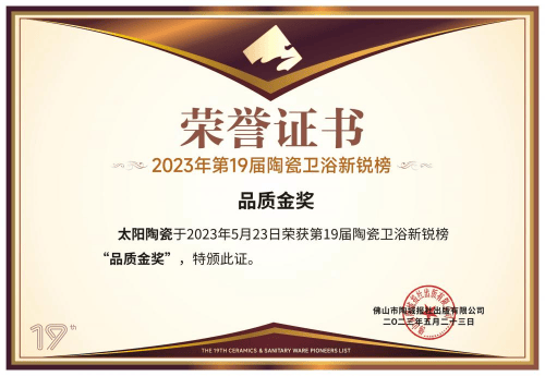 三、巨擘荣幸加冕,印证一线 载的品德遵守,让太阳瓷砖劳绩行业与商场的双重承认,繁众重量级荣幸成为其“一线品牌”身份的有力佐证: